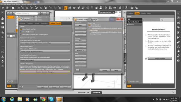 I'm not sure if this has been pointed out before, but I appear to be having program glitches with my finding all of my saved scenes in Smart Content and Content Library. As you can see in the attachment below, I am running the full 4.5 Pro version of DS and my File open is showing more scenes than the actual content manager. As you can see in my taskbar, I run a Windows 7, 64-bit.