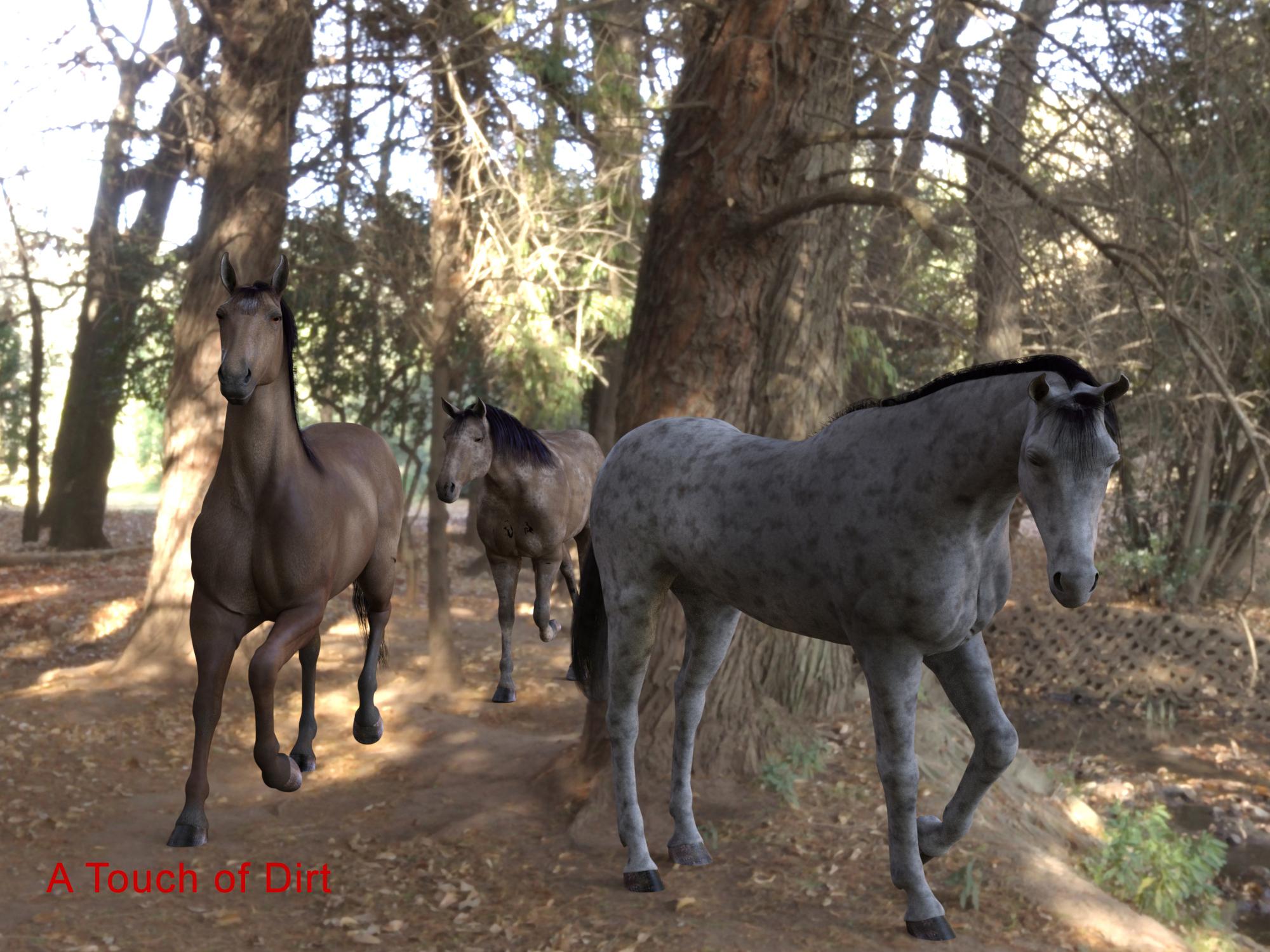 I used A Touch of Dirt to make new Millennium Horse colors. They all started as the same brown color.