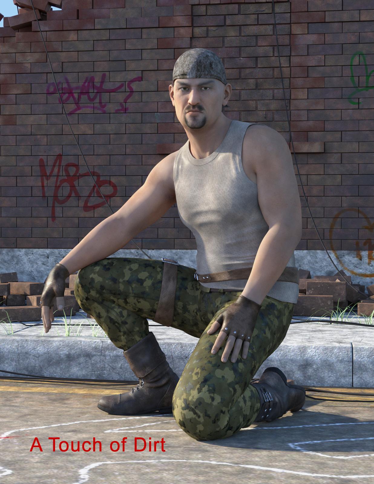 A Touch of Dirt can do more than add dirt. I found that it has some full presets that make a realistic camouflage pattern on the Renegade Pants that I was using in my scene. I was especially pleased with two things it did better than just applying a camo shader: