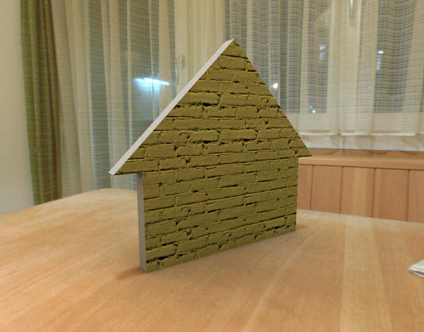 One potential solution to this problem is to cut your brickwork out of one solid block. For example, if we just look at the side of the house.