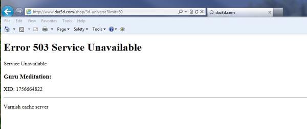 I'm getting this .... "This page (https://www.daz3d.com/shop/checkout/cart/) is currently offline. However, because the site uses CloudFlare's Always Online™ technology you can continue to surf a snapshot of the site. We will keep checking in the background and, as soon as the site comes back, you will automatically be served the live version. Always Online™ is powered by CloudFlare | Hide this Alert"