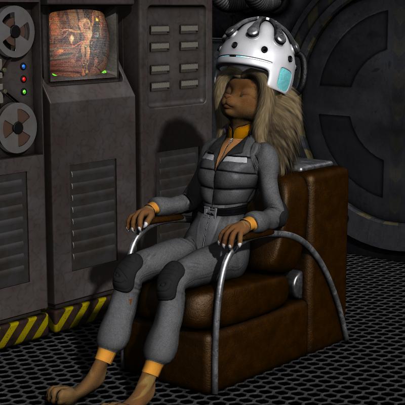 This is arguably an "unbound" non-canon scenario for my OC, Mzzkiti...unless she simplying "kicking back" in the freighter's "VR salon". With her penchant for slapstick misfortune, the recreation files will likely skip a few tracks. She'll miss her intended destination of the Moon and will, instead, land upon the Barsoomian version of Mars where she'll have to abide by its (un)dress code!