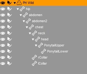 PonytailUpper and PonytailLower are the ghost bones you use to move the tail.