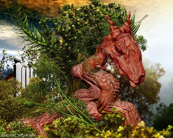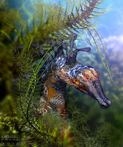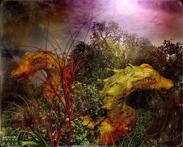 The top dragon, admittedly, is a deviation away from Bryce. I'm experimenting with different software these days, even though I return, over and over, to Bryce. Rather than "painting" the model, I merely exported it with a shiny clay material. The texture was modified and manipulated with the brushes in Zbrush. I've also experimented with importing my Zbrush models back into Bryce, but it's a bit difficult, as the models are so large. It does work, though.