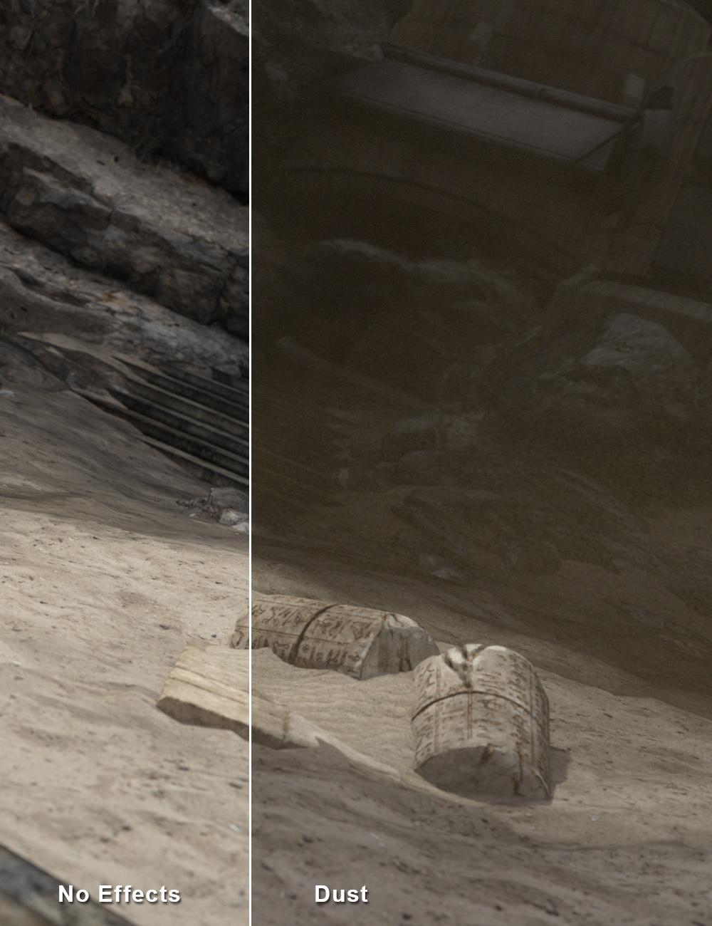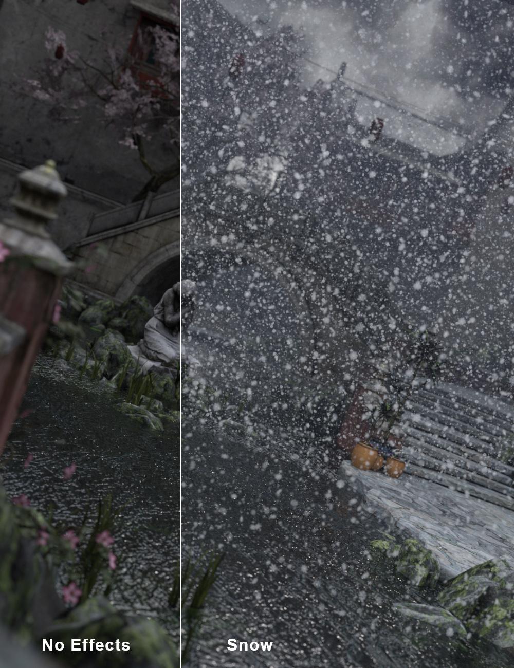 Effects include such things as Depth Haze, Dust, Ground Fog, Rain, Snow, Darkness, Clouds, and an Explosion!
