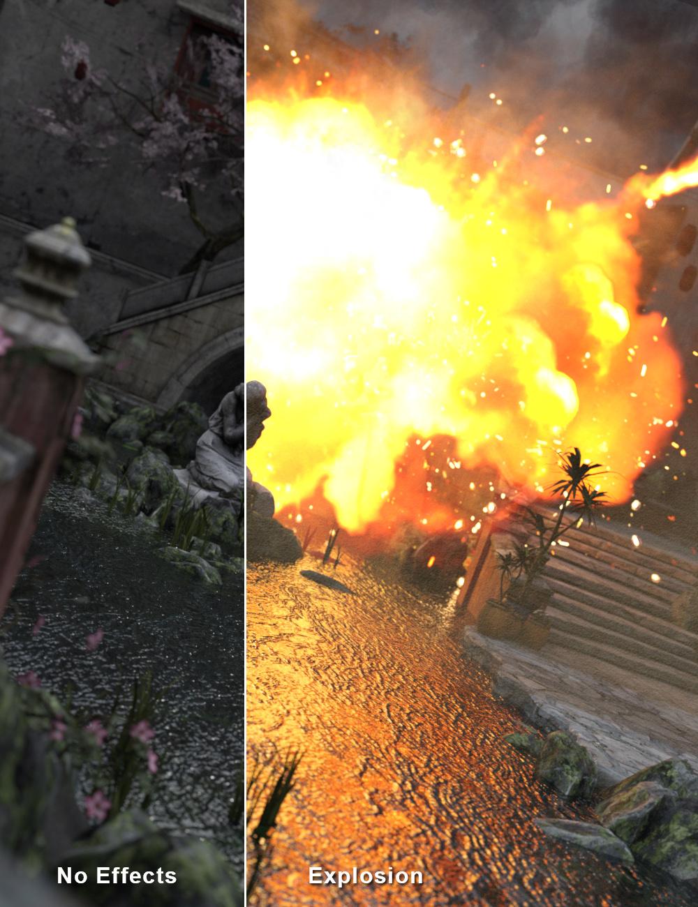 The explosion looks like it is casting light on the water....that's correct? And if I had a person in front of it, they'd be backlit by that fire?
