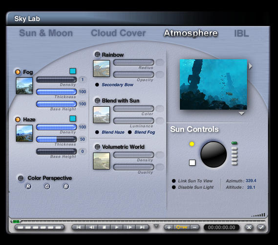 David, I was attempting to use some elements of your tutorial Bryce 25 minute lighting project - advanced underwater effects - a tutorial by David Brinnen but ran into a snag at the fog and haze settings.