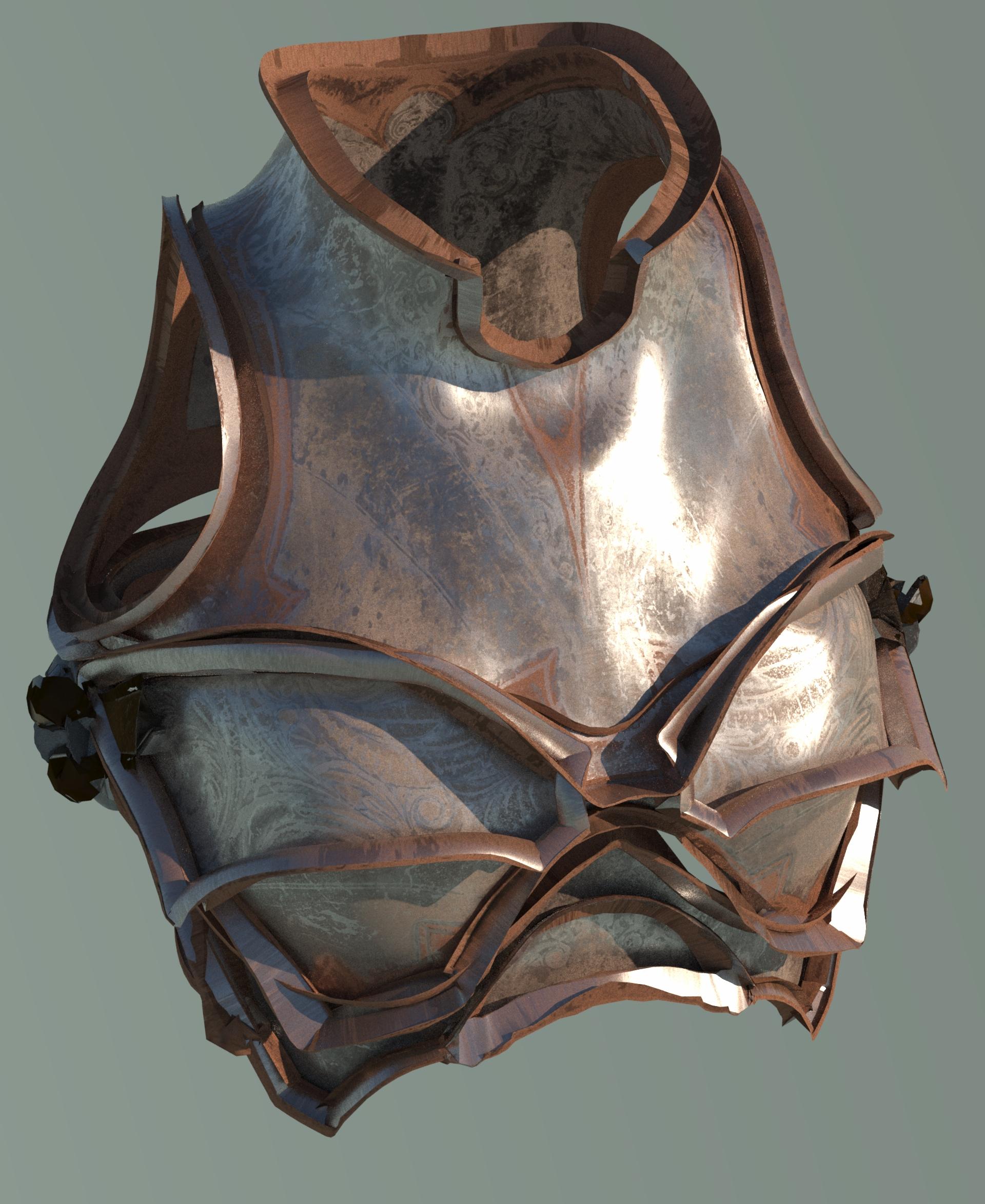 Here is a render of the breast plate using Lux Core Render engine and I did not change anything except play witht the shaders a little bit.