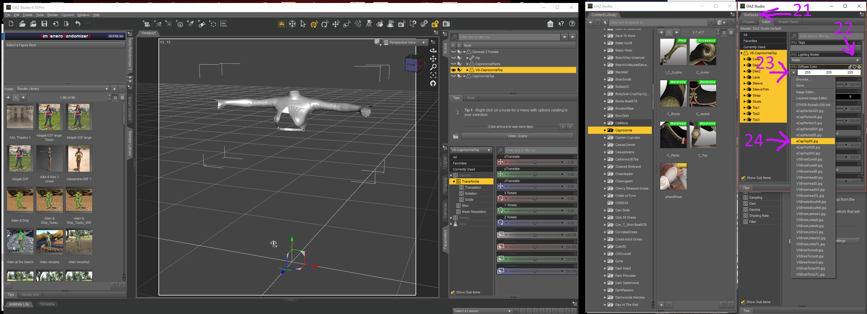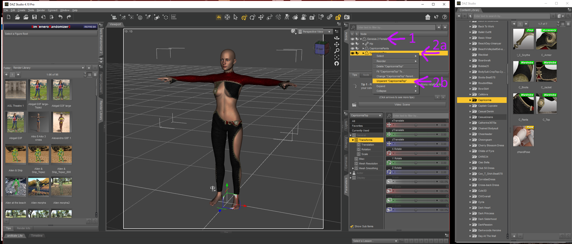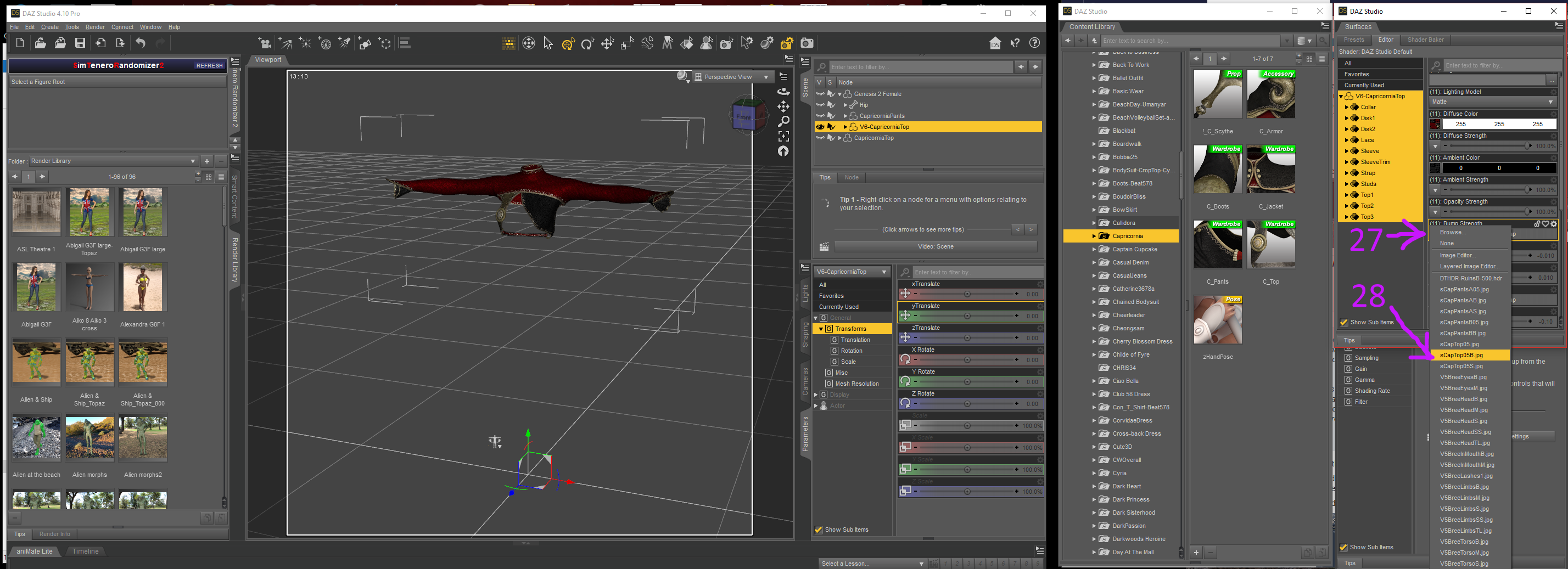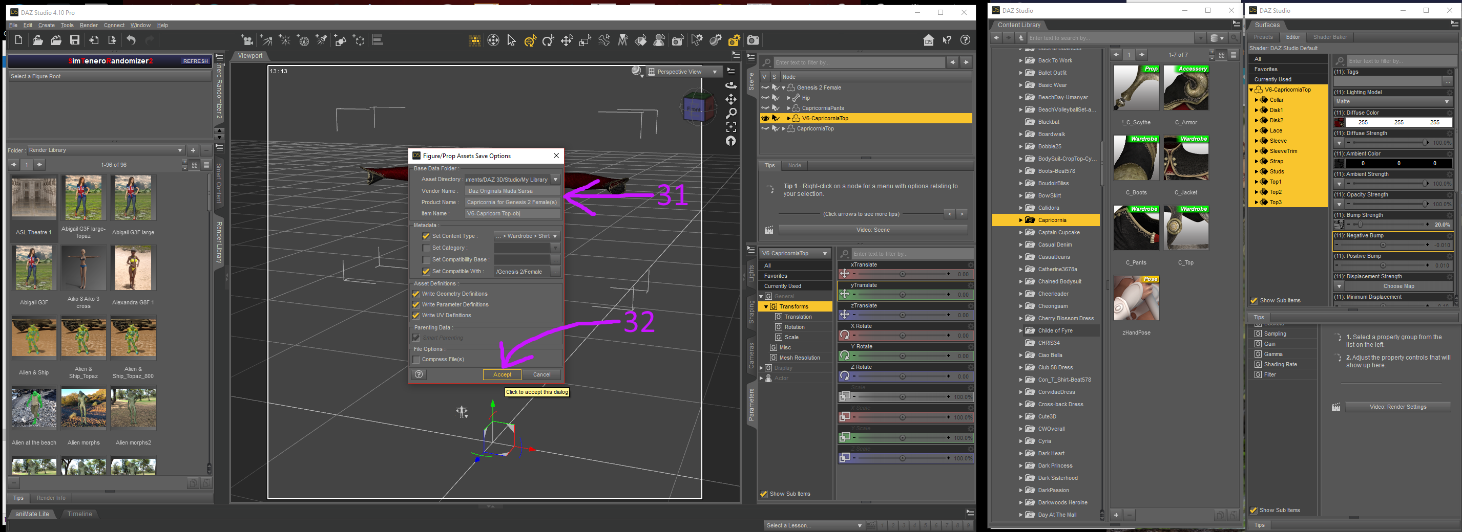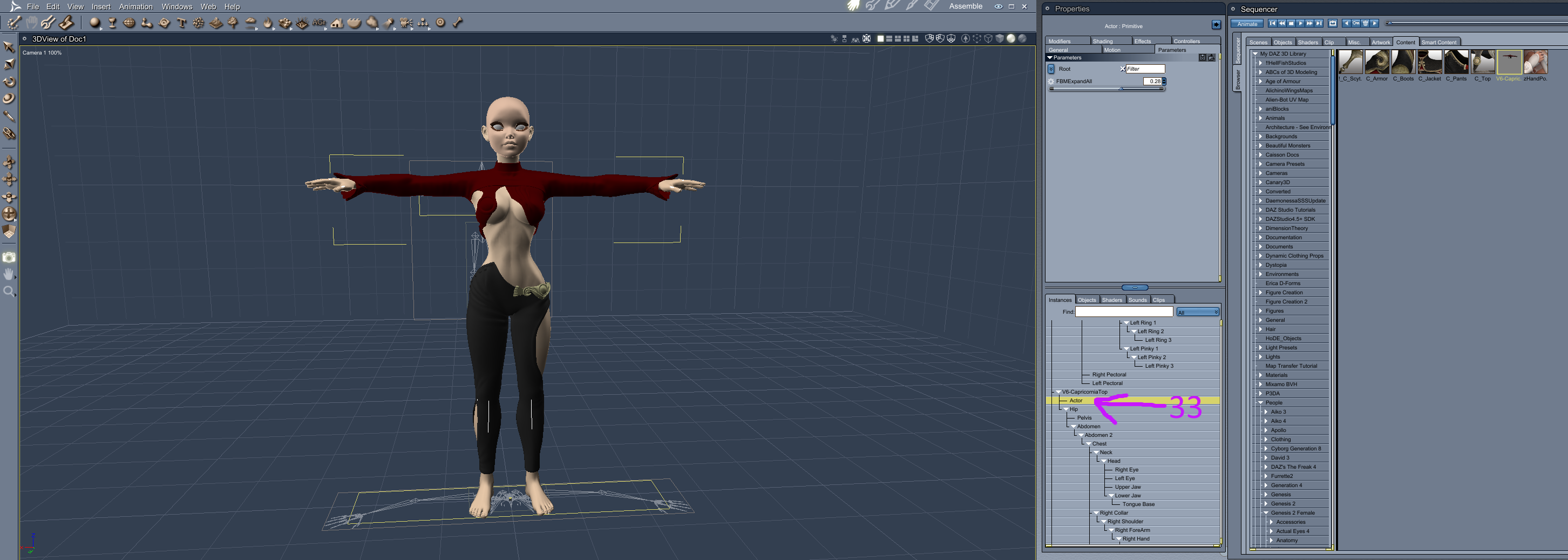 Step 33 - Back to good old Carrara, import the saved clothing onto your base figure, fit to the base figure, then adjust the clothing morphs if required to fix poke-through