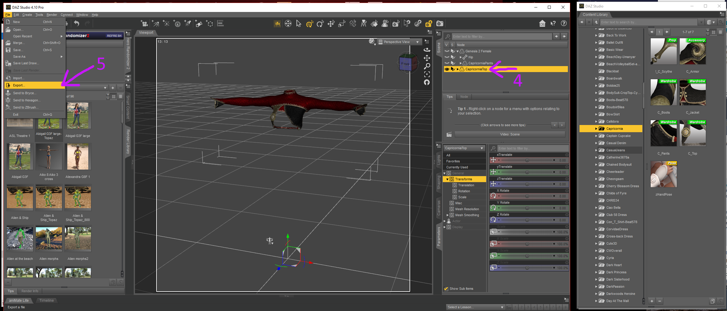 Step 4 - Choose the problem clothing by clicking on it in the Scene folder