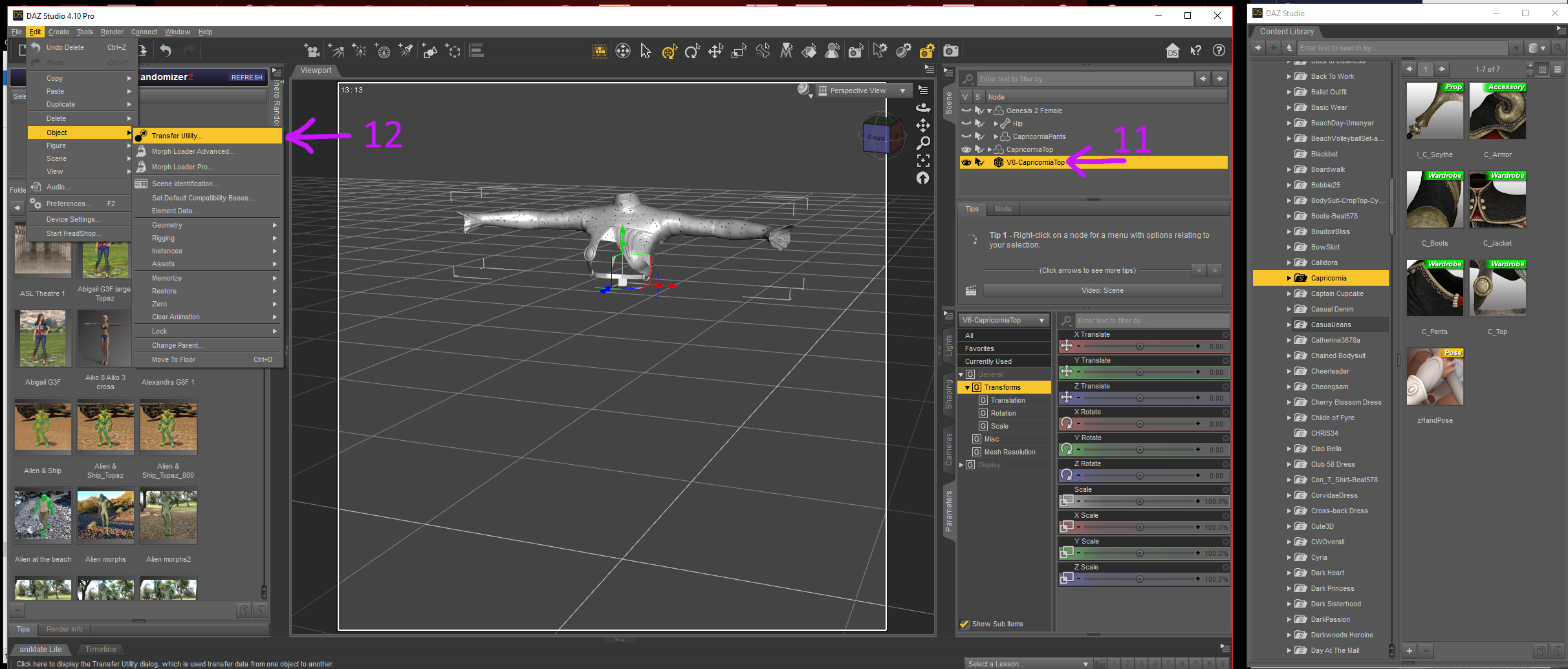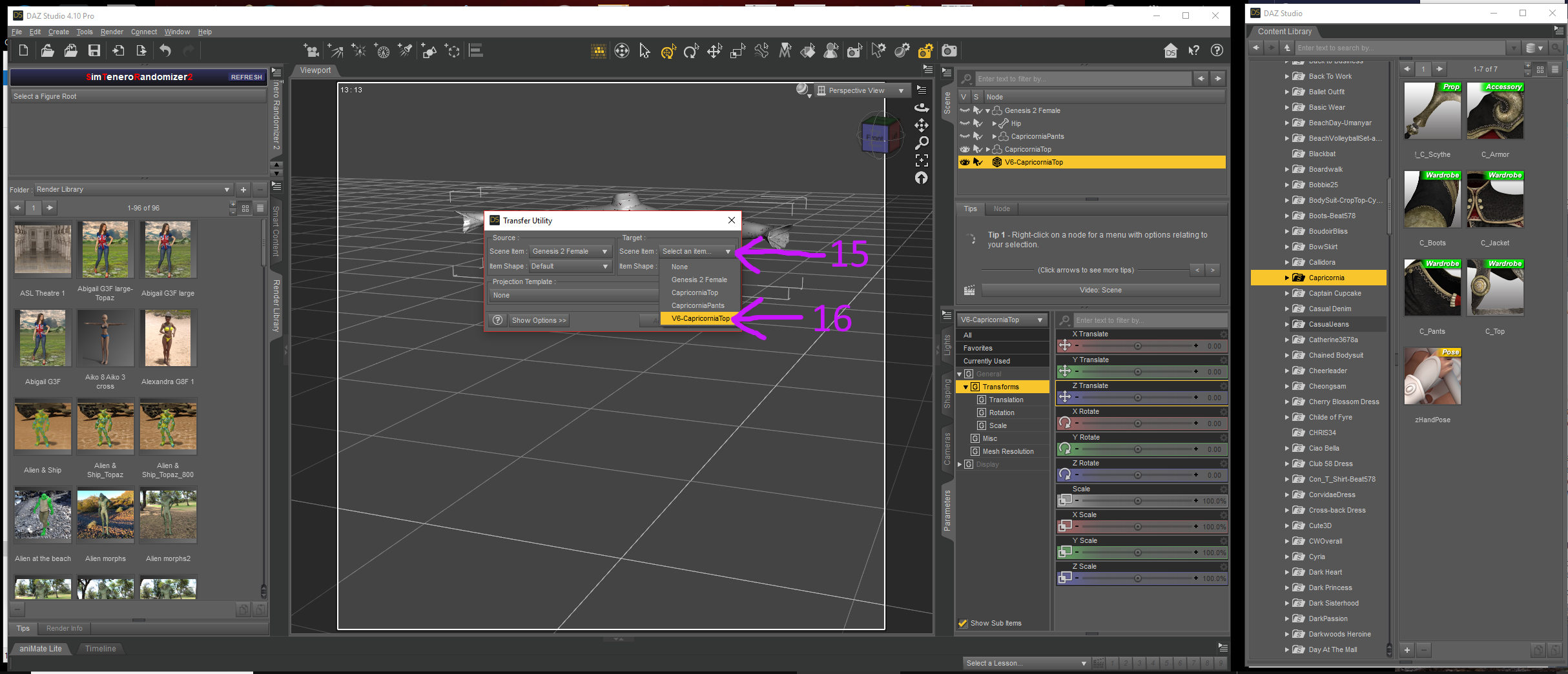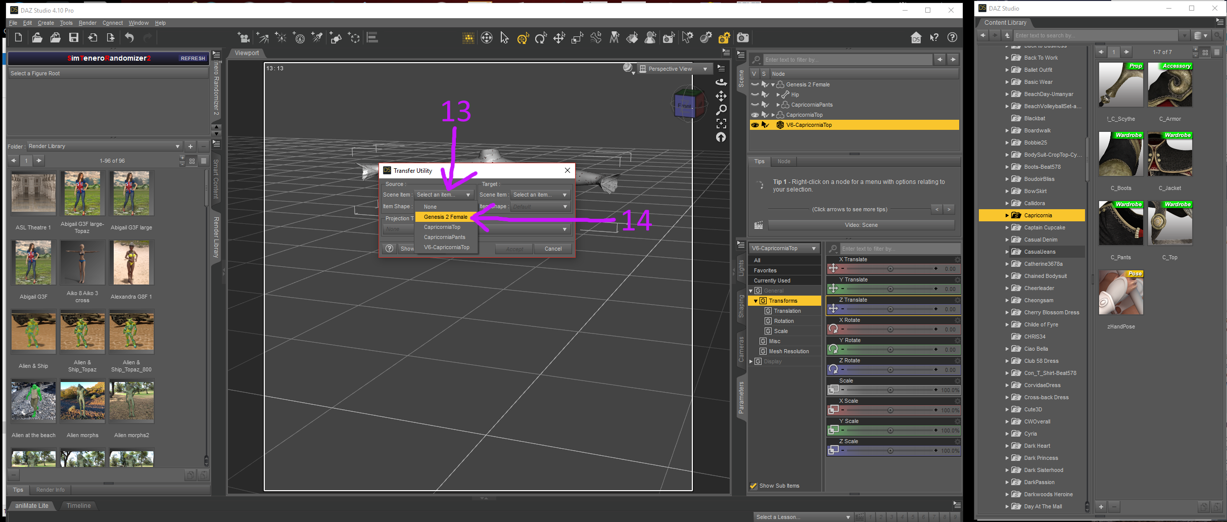Steps 13 & 14 - In the Transfer Utility pop-up box, you need to select the base figure that you are transferring your morphs/skeleton from, in this case it's G2F