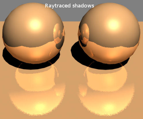 Here's a rework of the most recent test (i.e. SDMS(Beta04).duf applied to both plane and right sphere) - I've put in a single distant light, and tried both types of shadows.