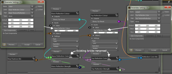 4) Rename the existing "Base/Top Reflection Color" bricks as existing "Base/Top Reflection Color Mix".
