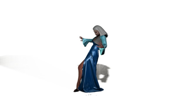 my Goth Nun, frame 835 of 3000, I made her clothes reflective, but does not look like stiff metal animated with dynamics