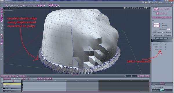 28000 verts. You wouldnt want to know how many I use then. Are you attempting to make this dynamic? It may be more simple to make static cloth and shape it exactly how you want it. If you want it to slight movements perhaps make some morphs In hex. Static clothing is more accurate in that you have total control over it. Being a hat it prob not necisarry to be dynamic. Also I prefer square polys. Triangle poly can be a real mess to work with!