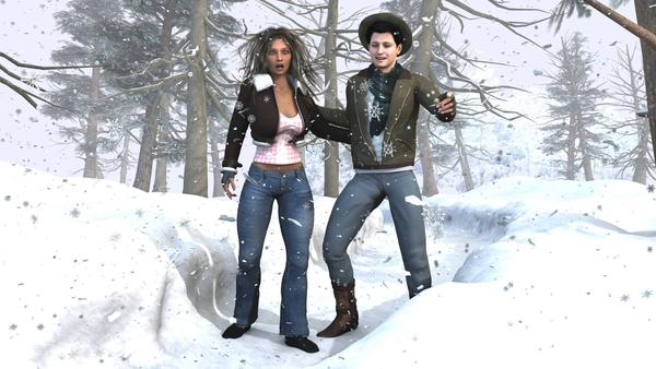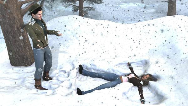 Snow Day: You've really brought these characters to life...excellent posing and expressions, and the snow angel looks amazing. The woman looks like she needs another layer of clothing though (and maybe the man too, for that matter)! ;-)