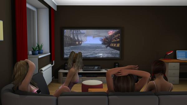 Just a bunch of college girls sitting around the dorm room watching a pirate movie.