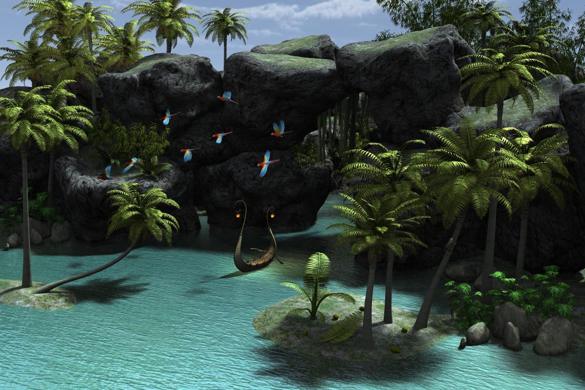 Well, I just wasn't having any fun with my city render. It didn't have a story, and it wasn't talking to me. So I abandoned it in favor of this lagoon scene.