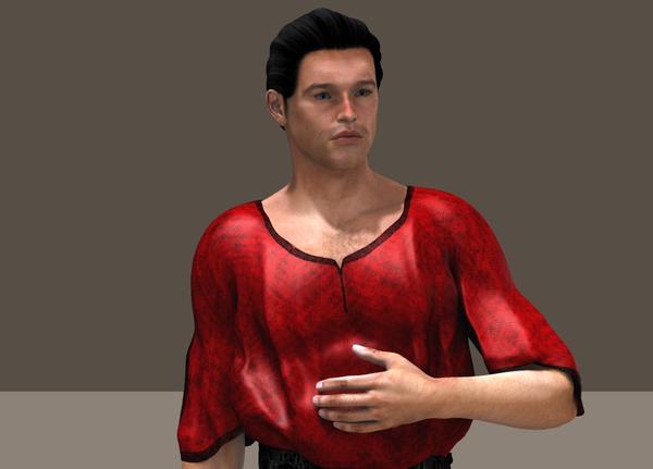 *giggles happily* This is P3Design's Jake morph, the M4 Jake skin from the Jake and Jeffery character set from Rendo, the sleek hair which decided to behave for a change, and Cath's Roman Tunic. The red velvet texture... needs help...