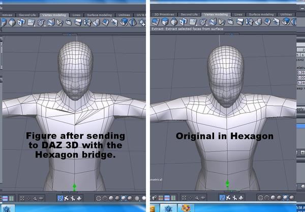 I sent my figure to Daz 3D using the Hexagon Bridge. This is what is happening to the figure that is send via the bridge, it is getting slightly randomized. Especially in the shoulders and hands.
