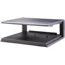 I gave my monitor a lift by grabbing a business laptop docking station at a garage sale. It lifts the monitor about 5" above the desk. I can also push the keyboard into the unused space underneath and free up some space for writing.