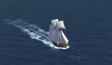 I created my first ship model in Carrara this year for a Carrara challenge ..I will include an image of the hull and how it was composed onto the water. The ship model was done in about two weeks the wake took longer. - much tweaking.. These videos are to be used in an I-book of Captain Cook that I am presently writing .....I will also include a blow up of the small video..when I loaded it up yesterday it was too dark.