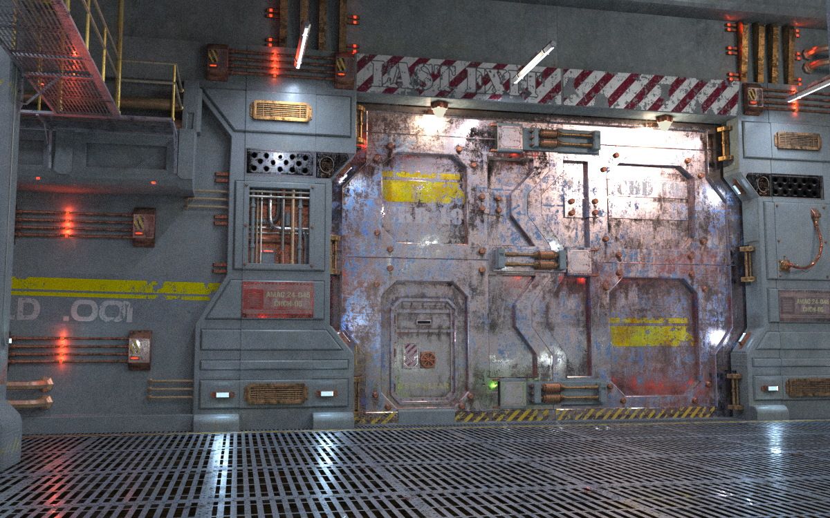 The doors on the right can be opened/hidden, and I made a T-shaped corridor to give the camera something to see through the door glass (or if you have the doors opened).