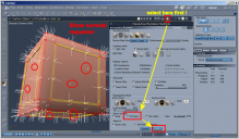 Pic 1 simply shows how to show Normals which are those white lines indicating which direction is out or the face of a poly. I call this Porcupine View so I've something to chuckle about... Oh yeah... back to the pic... I've highlighted the ones which face the wrong direction. This is a view from the back and tilted to show the bottom... I've circled all the Normals which only face inwards.