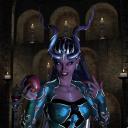 There is a lot of blue and purple in the scene, so maybe add a little more yellow to the light on the left side of her face to contrast. Bring up the over all lighting just a little bit and keep those nice, soft shadows.