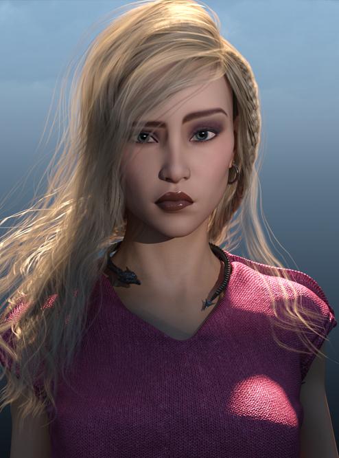Other than my 3 point light setup, I have a Point light with a fairly quick drop off rate.  The color is set to a light blue which I thought would work out great with the black hair and I do like the blue highlights the hair gets.  I tried a spotlight, but couldn't seem to get it to work quite like I expected for a kind of hair light.  It seems to go right through the girl and hits the floor.  I have no idea what I'm doing wrong.