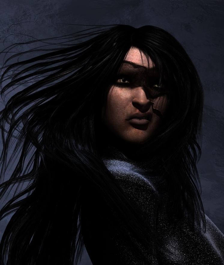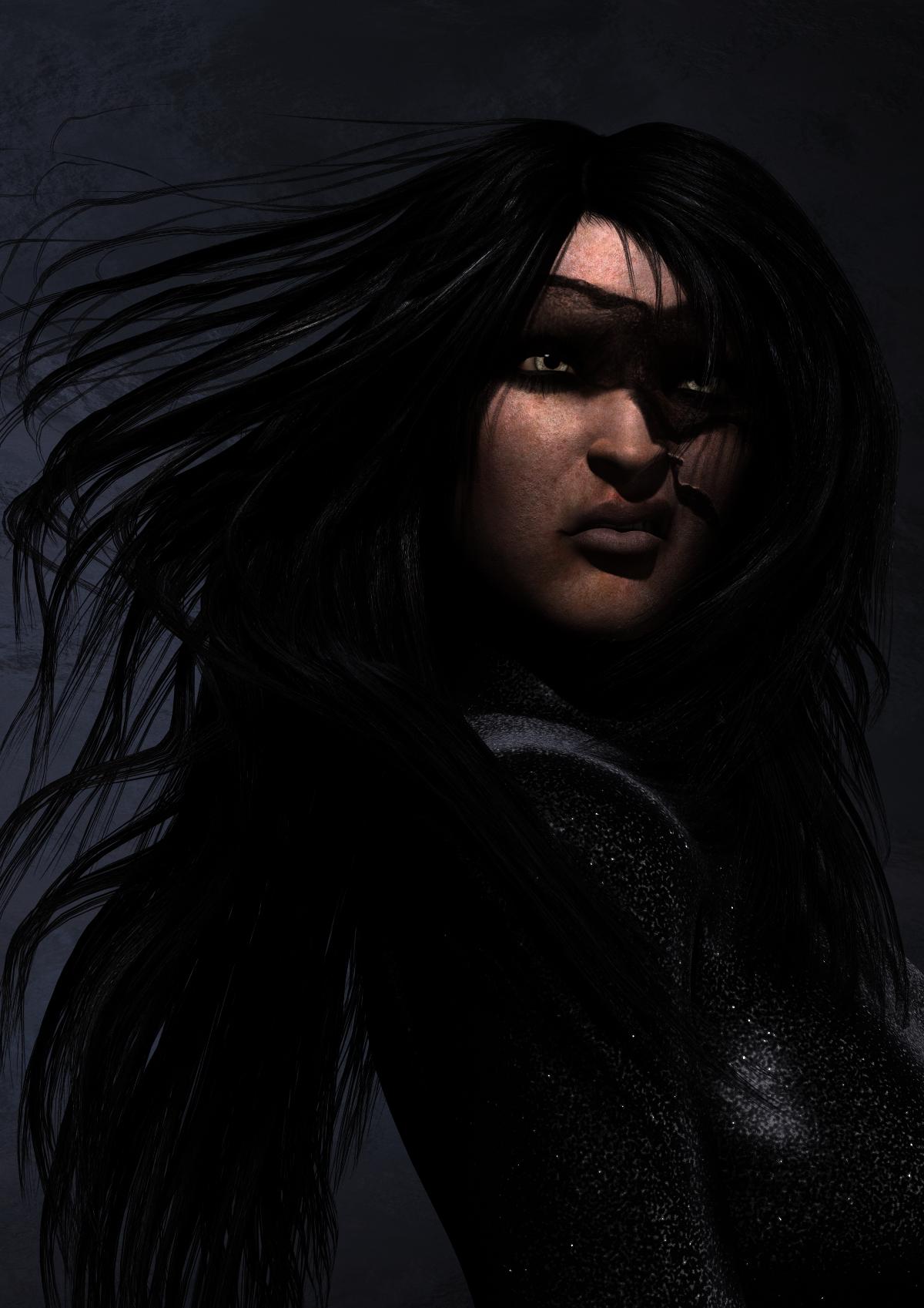 That's nice. You did a good job on that black hair. Black hair can be hard to render. Is her expression showing that she was caught off guard? That is kind of what I got from it. I think you could take the expression a little farther. It still looks a little bland, to me. I think you've done a nice job on the lighting, too.