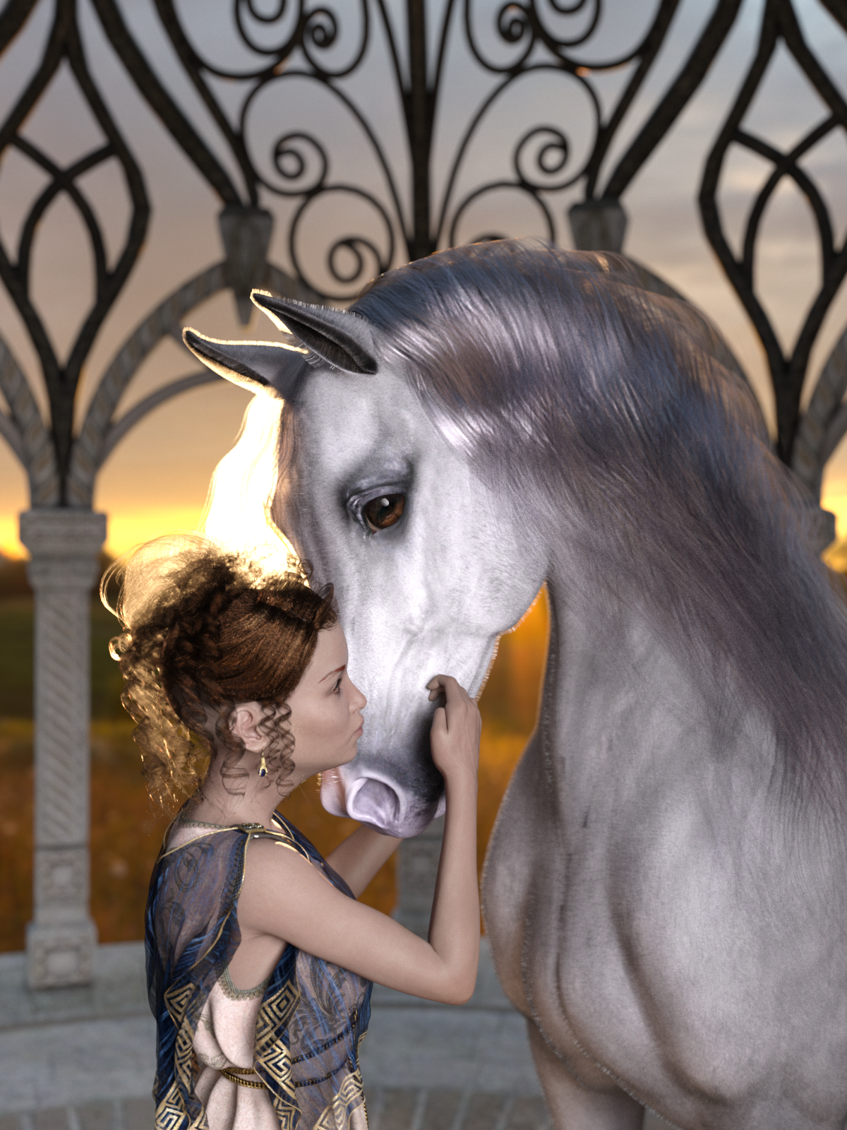Here's an update on my previous attempt.  I pulled back a little, and changed to a more "classical" theme.  I need to adjust her hair a bit still, somehow it ended up stuck inside her head...