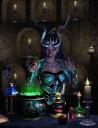 I crashed my entry 45 hours in and at 75% complete! Oh! It is rendering again but only at 25%. I've cropped it now similar to the horn lady that like apples but made the background interesting but not competivite with the fact it's supposed to be a portrait. I think I finally got the lighting right too. This time I am rendering directly to file. Although, I have yet to find a scratch file it is rendering intermediate results to, to copy eventually over to my Render Library directory so I hope it's not all in a RAM cache only to crash again.