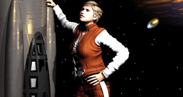 The first is a space one. The outfit is M3 Privateer. The chest buckles distort so a non-frontal pose works, or I could dial down the bosom, but this was a test of how much it could go. The texture was recolored in diffuse. Hair is Gloria, and the "space crafts" are mine.