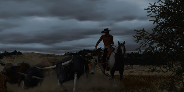 Added a Volumetric sky, some Abaro trees, some instanced grasses from the included Bryce content and a Genesis figure.