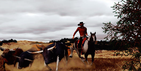 This was my entry in the Renderosity Bryce challenge, "Damage". I began this with experimenting with negative terrains and rocks to "damage" primitives and then mixed the results into a scene. Then tried to create some damaged looking procedural textures.