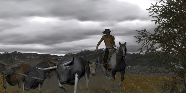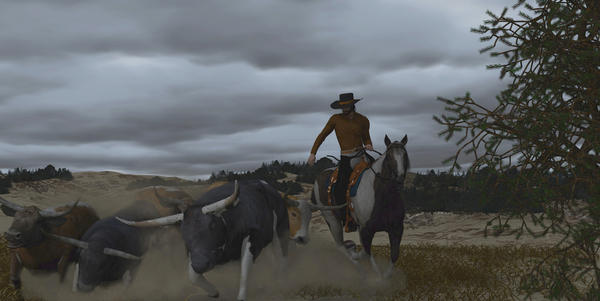 @GG: The image you chose depends on what you want to emphasize. While the dust in the first image is more visible, the cattle are more detailed in the second image. As is the cowboy, grass, and trees. That said, lighting is balanced better in the first image which gives a better image overall. Like others, I'd vote for the first image.