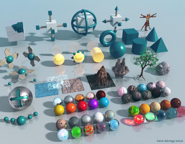 Bryce 15 minute scene project - how to set up multiple glowing objects - by David Brinnen