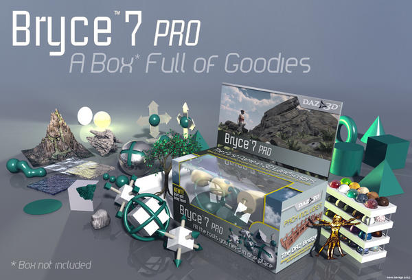 The truth is that my work is mostly trail and error (with lots of error) and the Bryce Package itself (for instance) utilised a lot of Poser (the model started life as a Poser model), Photoshop (to make the design to apply to the model) and the rest was nothing more than some simple boolean modelling and tweaking of materials.