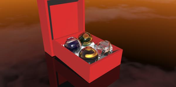 @Rareth - it looks a bit like a huge frog. The spheres in the box look nice, particularly the pixel-effect on the inner spheres. Nice torus knot jewel. The chain looks good.