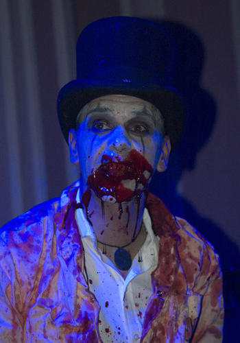 Most of the blood comes from a trick I do where I swallow a sword and then when I pull it back out, my mouth is full of blood.