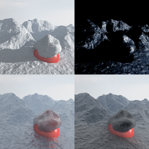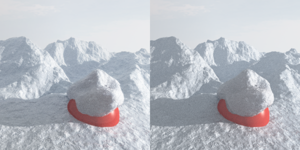 - the result of composition (left) compared with one pass render that took significant time to render fully (right)