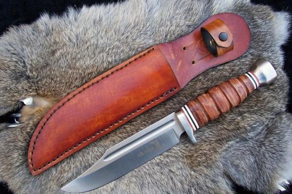 As for the colour... Well last night, I decided that a knife with a shiny wooden handle that has a reflective metal blade would more likely come in a tan coloured sheath, so I started working on a tan coloured leather version, so the stitches won't be so obvious, having said that, the colour of the stitches at the moment is harking back to the time when all jeans and other strongly stitched fabrics all used the same type of thread, which was only ever available in that golden yellow colour... that's my excuse anyway.