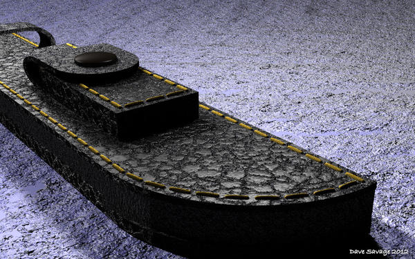 Liking the render overall but I disagree about the stitches, I think they look too vibrant and are too uniform (almost printed on). If you were to dull them down, cover them with little Toruses set into the holder (as you're doing it all in Bryce), and randomise the size, shape , and rotation of each torus slightly, that might improve the stitches.