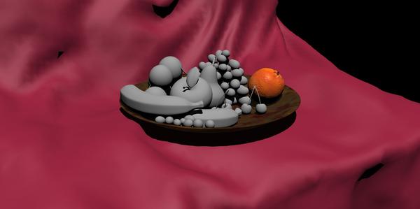 the cloth drape needs more smoothing, and I can't get Bryce to do it, I might drop it from the scene and just do the fruit plate on a table instead..
