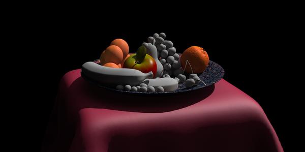 Your Fruit Bowl looks good but the frontside is a little to dark, maybe a fill light left side from the camera.