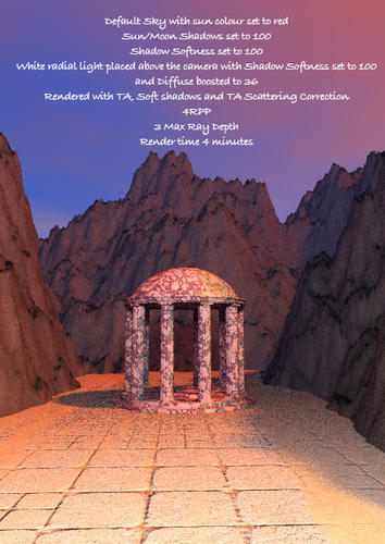 For your scene, you may be better off turning your sun red (you;ll have to play with the colour settings to get it to look just right) and having a normal white radial above the camera to make the foreground white while keeping the background mountains red. Unless you want the red light source to look as if it's coming from inside the stone temple.