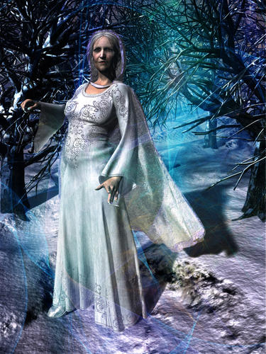 Well I'm sure about this, that's a splendid image and I like the concept of making her appearence aged as it feels well matched to the concept of a goddess for the seasons. Winter has always felt aged to me where as spring and summer have always felt youthful. Yet even though it's an aged face it's still an attractive face which makes it fitting to be the face of a goddess.