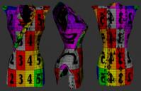 *Game modeling/mapping - Generally, mapping for games is about resource footprint, and optimizing the map to the fullest. So, for example, a human character is mirror/stacked map on the X axis to allow for optimal painting space, and packed tight (no pixel buffer) for optimal non-wasted map space. This is fine, and many people even map this style for Poserverse, but there are some caveats to this type of mapping, and one must no when (or even why) to map this way.