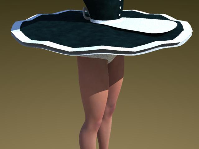 Anther recurring issue is draping layered clothing. I'm still trying to figure this out. So far, I think it is important to have sufficient mesh density. The plugin has some ability to do add subdivision with a dial, but here I modeled my own clothing and experimented with different densities. Extreme test. How abut a skirt with a lot of folds over a petticoat, with an apron over all of that? After some initial struggles, I think I got very good results. To get the flouncy folds, I started with a skirt that issues as a broad circle from the waist so that it would fold when draped. I put a few waves in itto get the folds started. The petticoat was a duplicate but with a few changes so that the vertexes would not line up exactly. The apron was modeled aboe the skirt with a bow in the back.